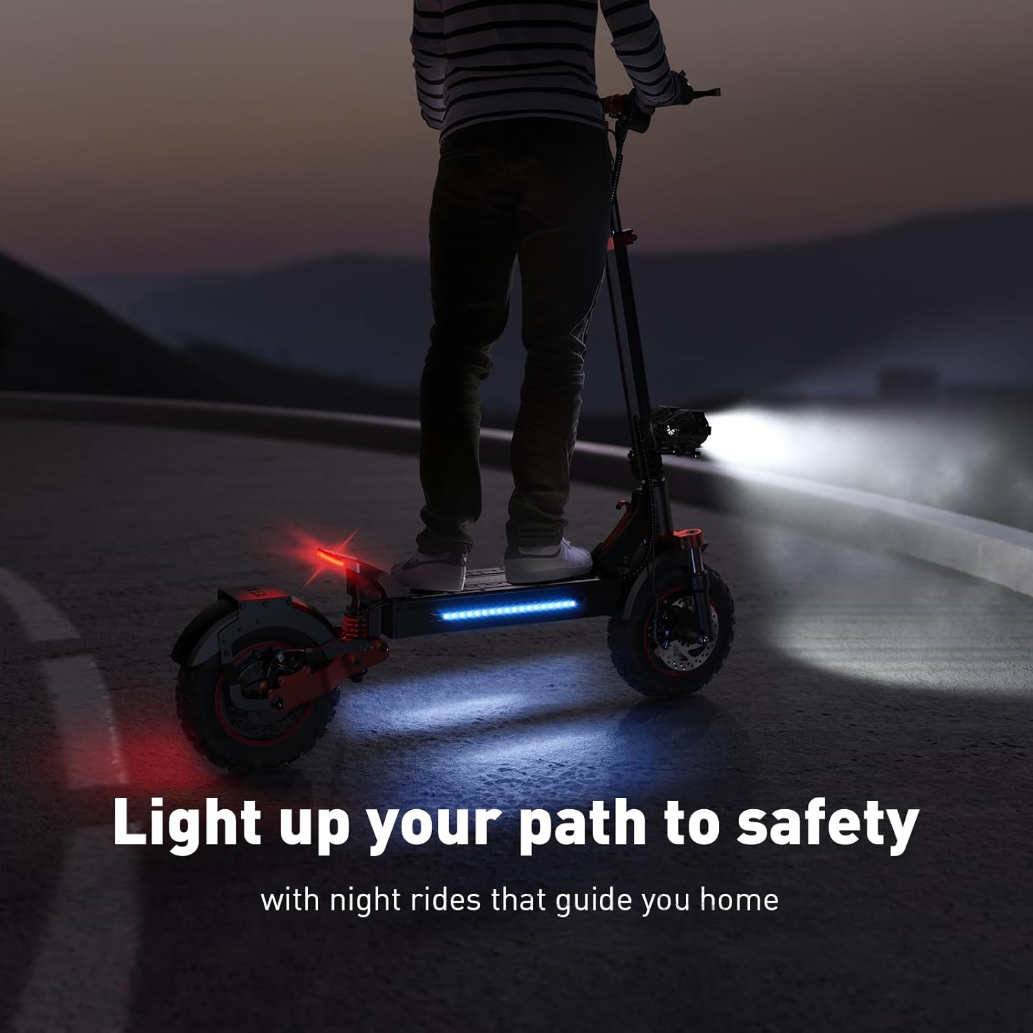 🎁SUPÉRIEUR : Elle est équipée de pneus tout-terrain basse pression spécialement conçus pour une meilleure résistance à l'usure et une durée de vie prolongée. Elle est dotée d'un double système de freinage (freins à disque avant et arrière + frein électronique), améliorant ainsi les performances de freinage. Dotée d'un système d'éclairage complet et d'une excellente résistance à l'eau, la trottinette atteint un indice de protection IPX5, garantissant une conduite sûre même sous la pluie ou la nuit.